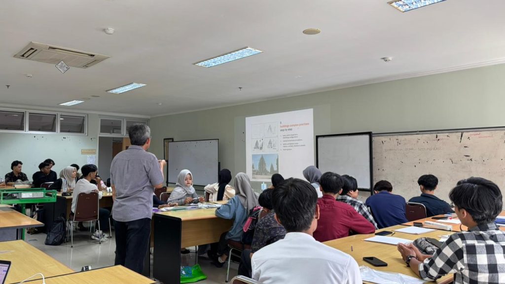 Workshop ini mengusung tema “The Architecture of Shadows” dengan menghadirkan Hanif Budiman, Ir., M.T., Ph.D. sebagai pemateri. Dalam sesi ini, beliau membahas bagaimana cahaya dan bayangan memiliki peran penting dalam membentuk pengalaman ruang dalam arsitektur, serta bagaimana elemen tersebut dapat dieksplorasi melalui proses sketsa. Melalui pemaparan materi dan contoh-contoh visual, peserta diajak memahami cara menangkap karakter cahaya, kedalaman ruang, serta dinamika bayangan dalam gambar arsitektur. Selain itu, pemateri juga menampilkan beberapa karya sketsa hasil eksplorasi pribadi beliau sebagai referensi, sehingga mahasiswa dapat melihat secara langsung bagaimana konsep cahaya dan bayangan diterjemahkan ke dalam proses menggambar arsitektur.
