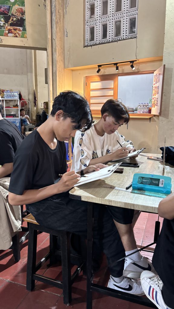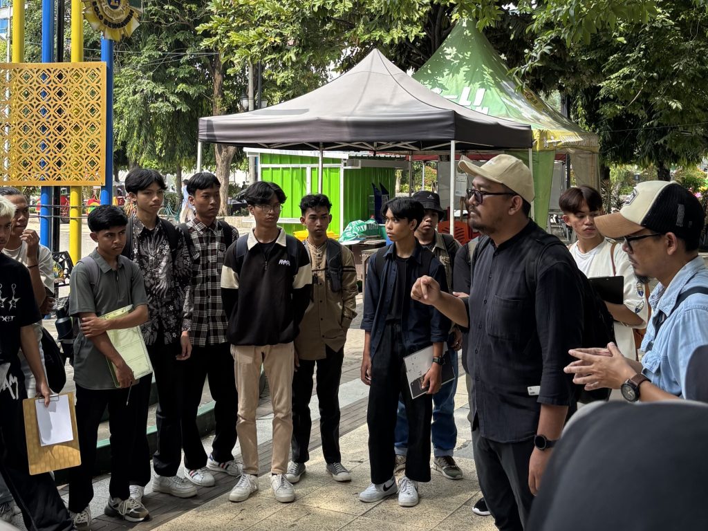 Live Sketch berlanjut setelah istirahat makan siang menuju kawasan Pasar Gede yang legendaris. Di sini, tantangan menggambar menjadi lebih seru karena mereka harus menangkap hiruk-pikuk aktivitas pasar dan detail fasad bangunan art deco di tengah keramaian kota. Hingga matahari mulai condong ke barat, goresan pensil para mahasiswa terus menari di atas kertas, mengabadikan setiap sudut estetik dari salah satu jantung denyut nadi Kota Solo tersebut sebelum akhirnya perjalanan sore itu diakhiri dengan tumpukan karya sketsa yang memuaskan.