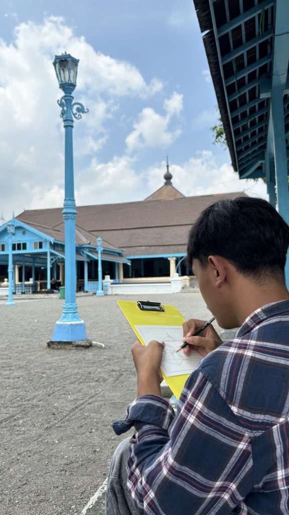 Setibanya di Solo, destinasi pertama yang menjadi objek Live Sketch adalah Masjid Agung Keraton Surakarta. Di bawah naungan arsitektur Jawa yang penuh sejarah, para mahasiswa mulai menyebar, mencari sudut pandang terbaik. Kegiatan menggambar ini berlangsung hingga adzan Dzuhur berkumandang, dan mahasiswa laki-laki langsung bergabung dengan warga setempat untuk menunaikan ibadah salat Jumat berjamaah.
